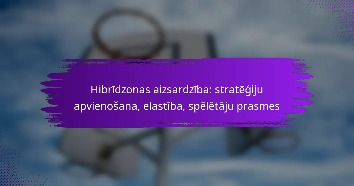 Hibrīdā zonas aizsardzība ir stratēģisks pieejas veids, kas apvieno zonas un individuālās aizsardzības elementus, sniedzot komandām elastību pielāgoties pretinieku stiprajām un vājajām pusēm. Apvienojot dažādas aizsardzības taktikas, spēlētāji var mainīt lomas reāllaikā, uzlabojot savu reakciju uz dinamiskām spēles situācijām. Šī metode balstās uz būtiskām spēlētāju prasmēm, piemēram, komunikāciju, telpisko apziņu un lēmumu pieņemšanu, lai saglabātu aizsardzības integritāti un efektivitāti.